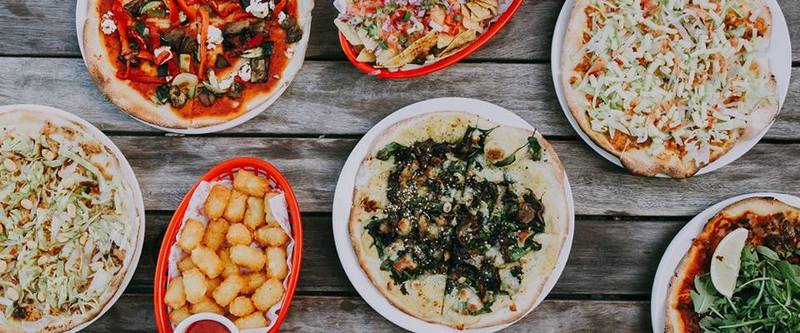 Pizzas range from the traditional to Mexican and French flavours, dessert pizzas, salmon, prawns, and a whole 9 vegetarian options that can all be made vegan on request.