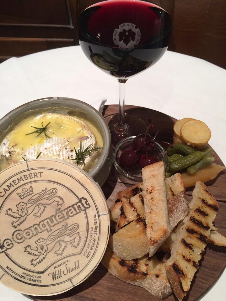 Garlic and rosemary baked Camembert served with toasted bread? Check.