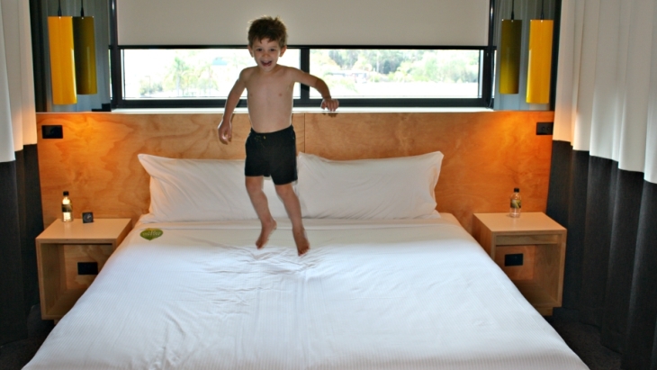 My son loves staying in hotels. I don't know if it's the the excitement of a new bed, the proximity to his parents while sleeping in new bed, or if it's just the simple fact that we are all so much more relaxed when on holiday. TV at night? Sure! Swimming before breakfast? Okay! You want to drink those little milks? Go for it! Jumping on the bed? Mandatory!