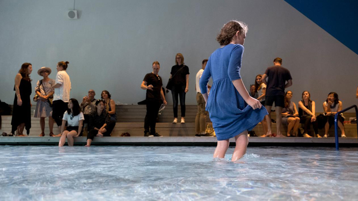 The exhibition, consisting of a functioning pool, invites visitors to ‘take a dip’ inside the gallery. Complemented by multimedia and audio content the Pool is an interactive space that plays with all of the senses with water, light, scent and sound. There's plenty of opportunities to interact with the exhibition, get wet, stroll on the wooden decking and relax the day away in the lounge chairs.