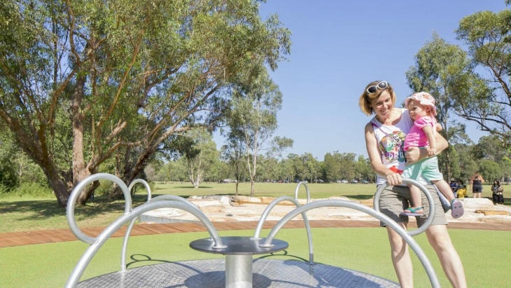 This park actually caters to all ages, but unlike a lot of new parks, the toddlers aren't an after-thought. Here they can explore the surrounds of Domain Creek in a natural bush playground setting. Small children will love the sand diggers and various sand pits (both shaded and unshaded), water pump, wooden cubby house, animal sculptures and small trampolines built into the ground as well as the flying fox with built-in seatbelt for extra safety. See what we thought here.