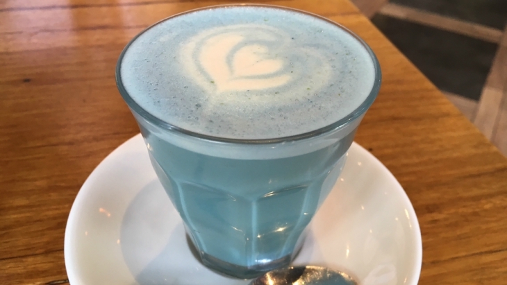 I swap my usual coffee with an almond milk Blue Latte, which is subtly sweet and coloured not with food colouring, but rather blue pea flowers! Lia has a sip and agrees with me that it's yum, "a bit cinnamon-y", she says.