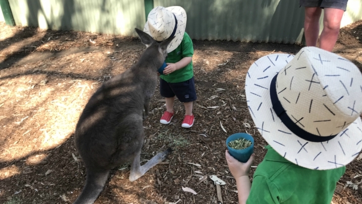 After our Koala family photo, we spent some time exploring Featherdale Wildlife Park. We purchased some animal feed ($2 per cup) and we set off to find some wallabies and kangaroos. The animal feeding was a huge success. Our boys were uncharacteristically brave enough to take some feed animals.