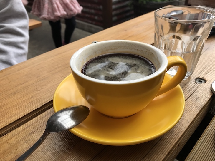 We opted for a long black ($3.80), organic turmeric latte ($4.50) and babycinos ($1.50ea) to start, and the girls shared a kids' toastie ($5.50) and a bowl of beer-battered chips ($8, the aioli was outstanding).