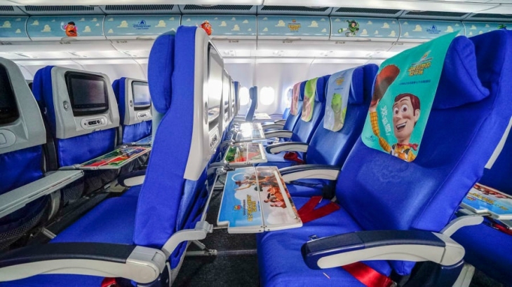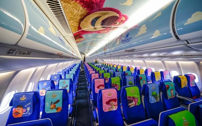 The aircraft takes you to the new Pixar Toy Story Land at Shanhai Disney Resort and there's also a Toy Story hotel, if you're after the full experience.