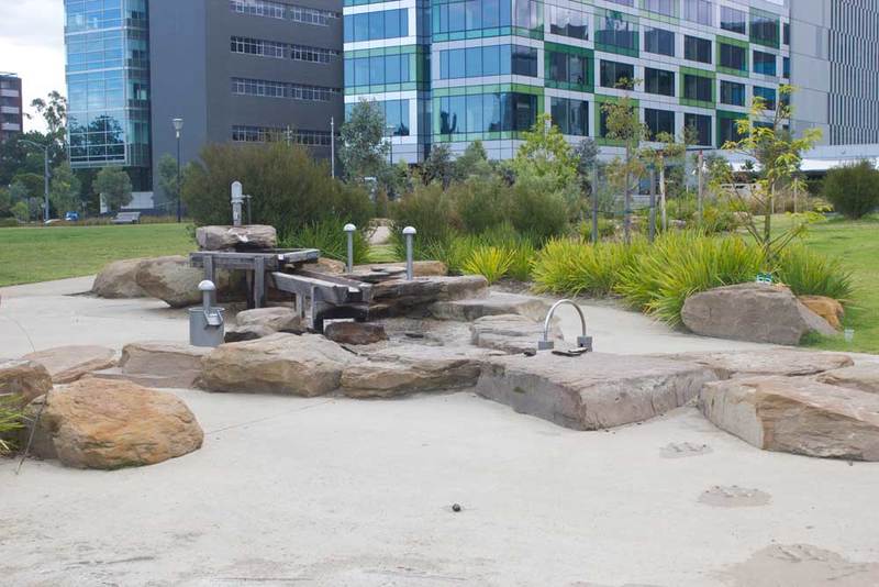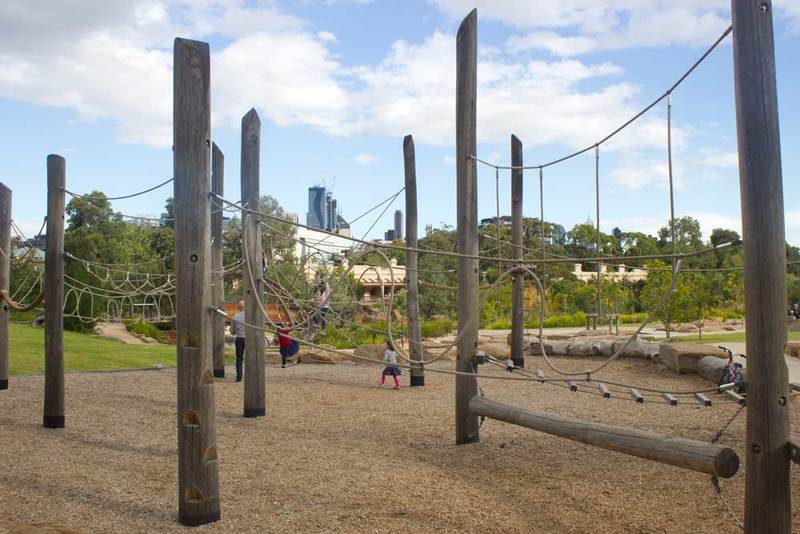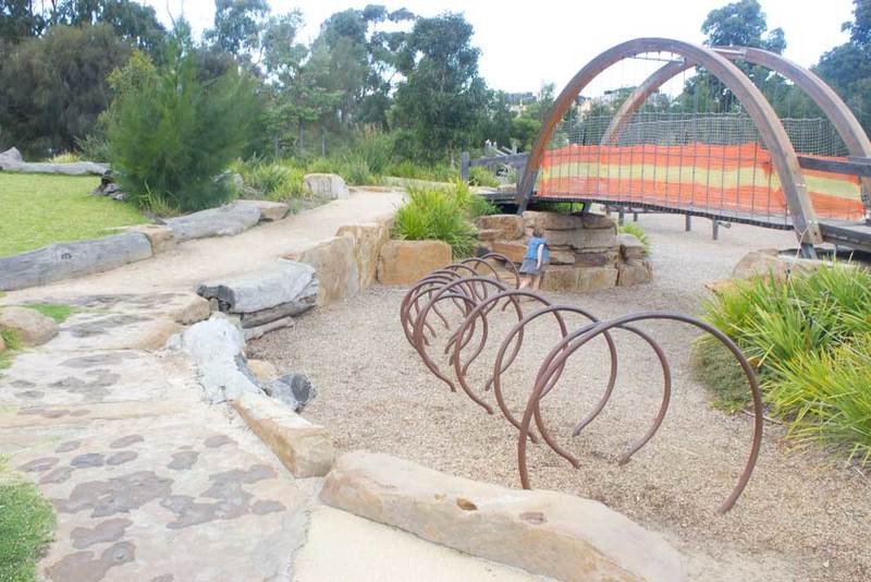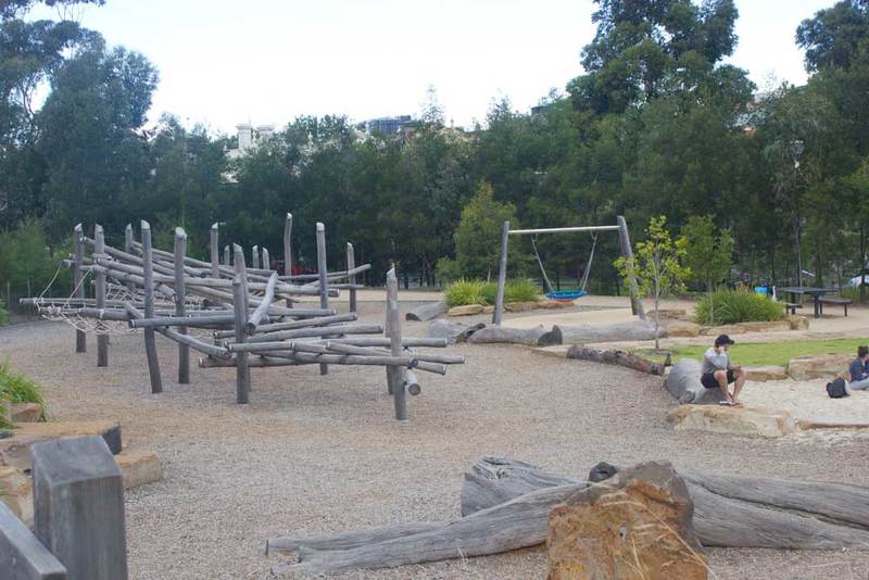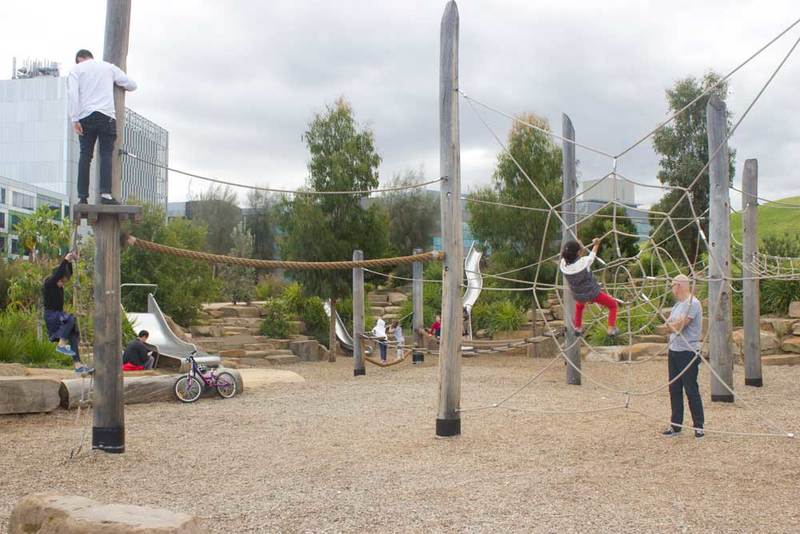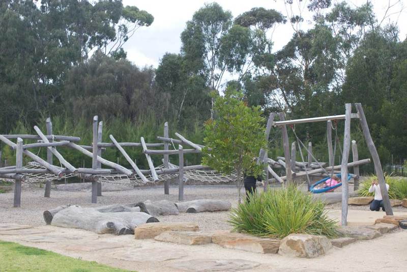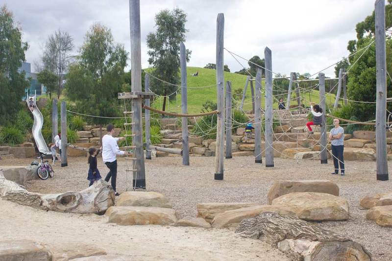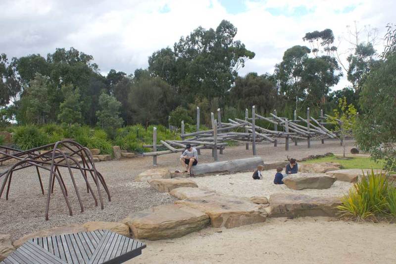 No plastic or bright colours here, instead you'll find climbing frames, water play, bridges, slides and swings made from wood, steel and rope - all materials that are in keeping with the natural, bush-like environment.