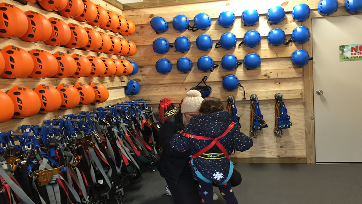 All equipment is supplied and the staff is there to ensure you are fitted properly and well briefed on how to use the lock on/off safety system which is very simple. The instructions were simple enough for our children, 4 and 6 years old, to understand straight away. The locking mechanism means you are safely locked on at all times and cannot accidentally unclip during a course. Once you are confident enough in the harness, it is a short 5-minute walk to the Home Tree where all 8 courses start from.
