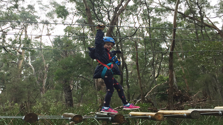 In search of high charged adventure, we decided to get airborne at the Tree Adventure Otway Park during the winter holidays. Trees Adventure Otway Park is a fun filled place to let the kids burn some energy and challenge themselves as they fly high through the trees, swing through giant loops and hoops and take on various other tree-top obstacles for some serious thrill seeking.