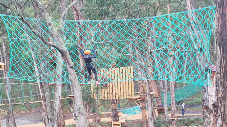 With children on the yellow course, you’ll need to follow them around at ground level. This allows you to give them verbal assistance if they need it which we had to especially early on. They finished both yellow courses twice and enjoyed the challenges of each obstacle, but the highlight was the zip lining on the flying fox sections. The kids felt victorious after completing the courses and clipped off happily.
