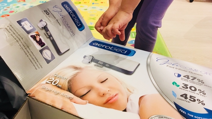 When our friends at Coleman, called up to tell us about this amazing deal they are running with their super premium Aerobed, I jumped at the chance to be a product tester and the next day we were sent their Queen version which popped out of a very compact box.