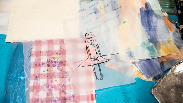 The way that Jenny Watson blurs the line between private experience and public space is particularly feminist, and this idea was the starting point for the development of this Contemporary Kids program. Also, a large component of the art making activities involves working with textiles. We will be drawing on different types of material and then extending these ideas collaboratively with some basic sewing. As a female artist who works in performance and media art, I am very aware of the way in which certain practices and mediums are gendered, and ranked accordingly. Textiles are an example of a gendered medium that has sometimes be relegated to craft, rather than art. I wanted to make a program that moved away from these gendered assumptions about who should use which kinds of material to make what kind of art, in order to open up creative possibilities for people of all genders and ages.