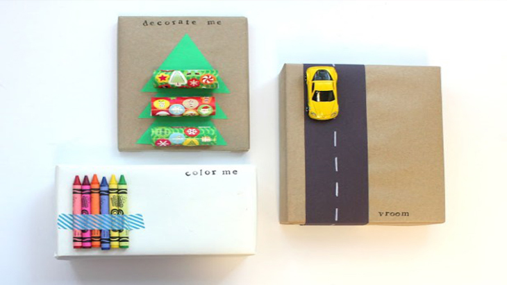 There are so many fun and creative ideas for wrapping gifts, but most of them need some amount of adult supervision to create. Here are some super simple fun interactive gift wrapping ideas, by linesacross, the kids can enjoy creating. Let them be as creative as they can. It’ll make the outside of a gift almost as entertaining as the inside.