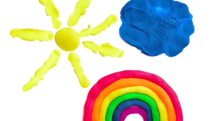 1. Lay out all your playdough colours- get your little one to decide what will work best as the sun, the rainbow, the sky, or even the moon and the stars.