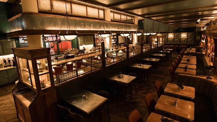 It's clear that they have spared no expense in the decadent design (by ACME&CO) and old-school decor: there are antique furniture and knick-knacks all over the place, custom-made stain glass windows and cast-enamel doors, tea trolleys, roaming shoe-shiners, copper-coloured bar equipment, old-fashioned uniforms worn by staff who escort you to your table or text you when one becomes available, and even a 1920s jazz selection playing as you dine.