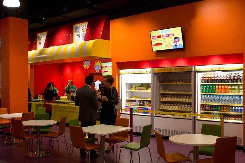If you’re hungry after all that cinematic adventure, there is a small cafe area selling sandwiches, pies, toasted sandwiches, juice, water, popcorn and other treats. You can grab a kids’ lunchbox (pick and mix your favourites) that come in a very cool giant LEGO brick, or grab something from the menu. Seating looks pretty limited so bear that in mind.