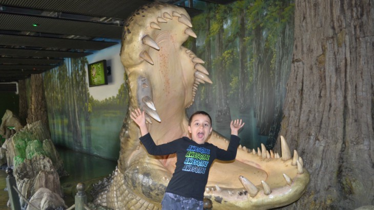 Our day began with animal encounters ranging from the cute and furry to the fierce and dangerous. The highlight for the kids was at Kakadu Gorge where they met with a mammoth saltwater crocodile. You can view his magnificence from above or below from the underwater viewing platform which the kids loved.