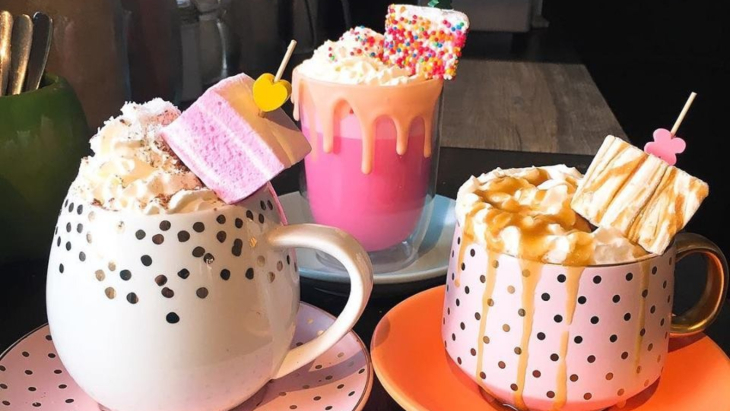 Think pimped up hot chocolates...from left to right that's a Cherry Hot Choc, Strawberry White Chocolate, and Caramel Choc.