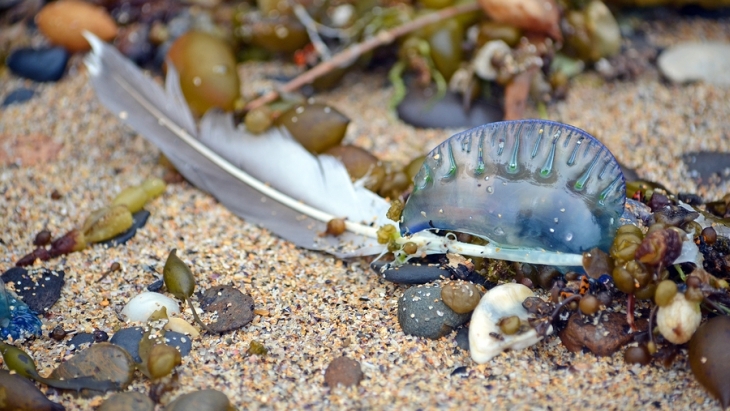 The bluebottle is probably the most well known jellyfish on the Australian coastline. Their blue, balloon-like sail sits above the water and is attached to a long tentacle beneath it. The tentacle is covered in stinging cells. When the tentacle touches the skin it reacts by injecting a small amount of toxin which causes irritation and can be quite painful.