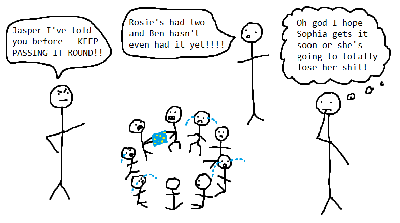 Games like pass the parcel are only going to send the parents into an anxiety-riddled panic. It's really just a circle of crying children surrounded by parents who need to get a grip!