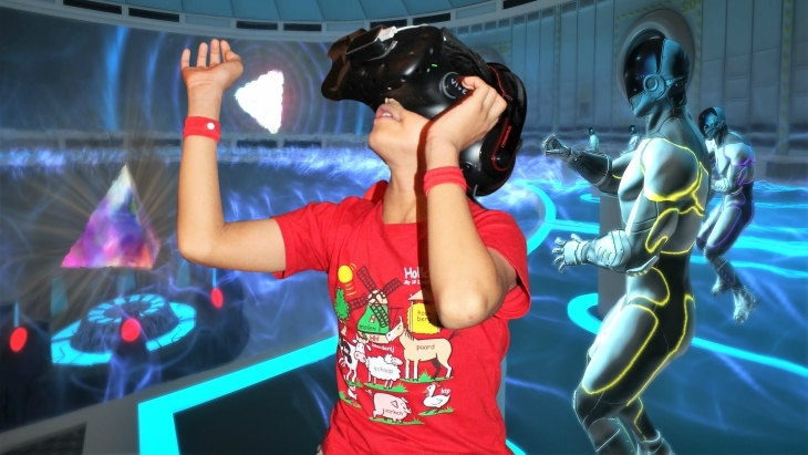 Located in the heart of Sydney CBD and, from a parent's perspective, perfectly placed above the very cool hole in the wall café Part One Espresso; these guys have secured and converted a neat little spot for Sydneysiders to immerse themselves in their very special brand of virtual reality: six rooms with space for up to 36 people to play one of their two games.