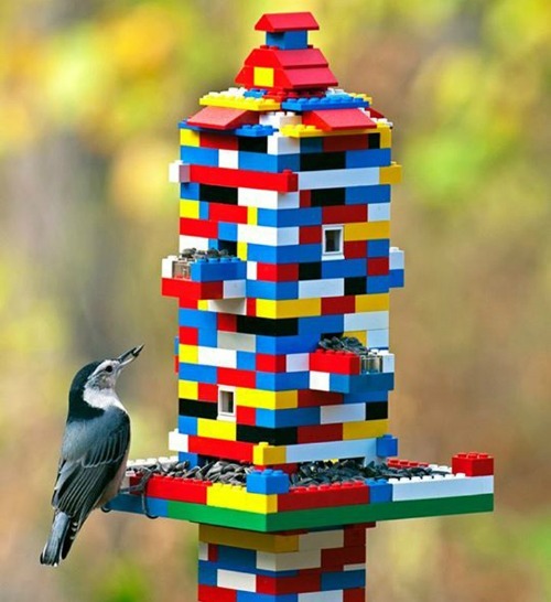 It's not just kids and their parents who love LEGO.... turns out, feathered friends are fans too. If you're a real eco warrior, you could make a full on bird home with a door, windows and perhaps a little LEGO perch inside.