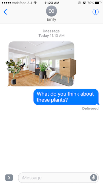 So when you’re in the store and hemming & hawing over which houseplant to buy, you can open up iMessage, start a chat with a friend and drag one of your home photos into your chat. Then use the stickers (make sure they are switched on first) to drag over the Kmart item image of what you’re thinking of buying. We love that we can reach out to someone for advice before reaching for our wallets.