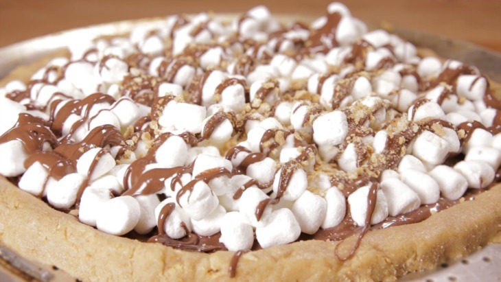 See- it's easy! With over 1.5 million views on Youtube, we're thinking this Smores Pizza thing has unlocked something wonderful. If that video was too delicious for you to follow along, pen-in-hand, then check out Food Network's easy recipe. It's enough to make 2 pizzas, so a large sweet tooth is a pre-requisite.