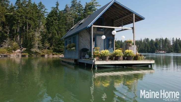 According to Maine Home Design, Foy and Louisa Brown utterly adore spending the summer time in their floating oasis, that took 10 years to make. It's been decorated with flea market gems and eclectic linen patterns, has railings made out of driftwood, skylights in the bedroom, oil lanterns (which are the only light sources), handmade doors and flower pots lining the deck. It's off-grid too, so the Browns can truly escape it all.