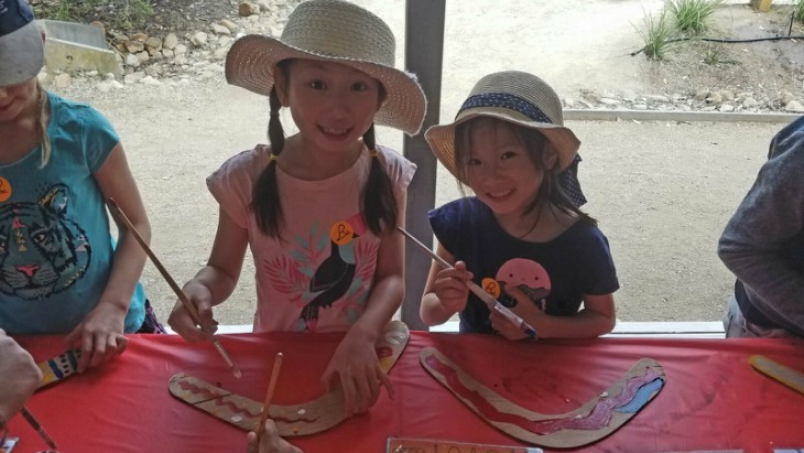 Rouse Hill is located on the traditional lands of the Aboriginal Durug people and the Boomerang art and throw workshop is an enjoyable way to educate visitors on traditions of these first Australians. Miss 6 and 8 were very keen to paint their own boomerang, after being taught the significance of Aboriginal symbols. While we let their boomerangs dry in the sun our Aboriginal instructor took us on a bush tucker walk and explained the usefulness of native plants.