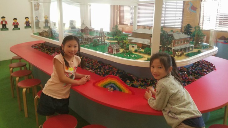Even better was the chance for the kids to build their own LEGO creations as the entire room was filled with LEGO building spaces with absolutely no shortage of LEGO pieces. Miss 8 built a beautiful rainbow and Miss 6 built a…futuristic space bed? (How many times have you had to guess what your kids have created?!)