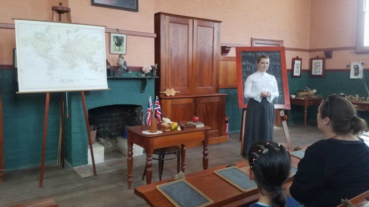 Another highlight of the Rouse Hill experience is a visit to the old school house. A strict looking teacher, dressed in period garb, rung the school bell while we trudged up the hill to the school. Visitors become the “students” and we were immersed in some of the typical rituals of a 1880’s school, such as pledging allegiance to God, Queen and country while standing around a flagpole.
