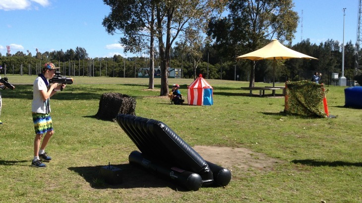 There were 10 children in our group and they were split into two teams – the Red team and the Blue Team. The aim of the game is to work with your teammates to defeat the opposing team in each battle. The session runs for one hour and in that time they played around 6 games with short drinks breaks in between each game. There is a supervising staff member who gives instructions for each game, helps with strategy and any technical issues with the equipment. For parents, there are some bench seats under shade umbrellas to sit and watch all the action from. My kids loved this activity and it was great to see them enjoying themselves outdoors and interacting with other kids.