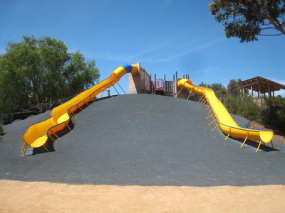 For a long, straight, uncovered mound slide that’ll give kids a rush, this is a great option. Caulfield Park in Caulfield North is popular with little slide hoons, not just for its long blue racer, but the other fun play equipment on site.