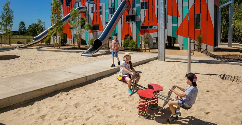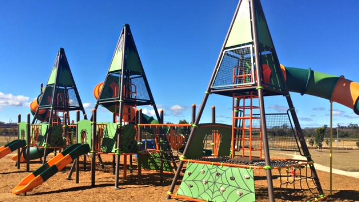 The inner-west's newest park is all about the superslides! There are three towers to climb which spit you out into three colourful, twirling slides. Not for the faint hearted! However the faint hearted can still take a fun ride on one of two cubby house slides suited to the toddler market.