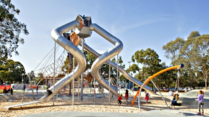 It's not just the new ones that have the best slides. This playground on the northern beaches has been delighting kids for years now. Rocket Park as its known to locals has a super-cool slide that bursts out of a rocket and lands you on the sand. There's also some fun little slides for toddlers which roll down a soft-play hill.