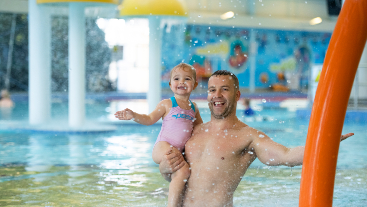 As you can see in the photo, the heated indoor children’s play area is truly fun for young kids. They have (amongst others) mushroom showers, buckets and sprinklers and a dedicated toddlers pool. And for those who might be a little nervous or don’t have enough arms or eyes on the back of your head, aquatic inflatables are available and of course fantastic swimming classes (it's never too early to start learning water confidence!)