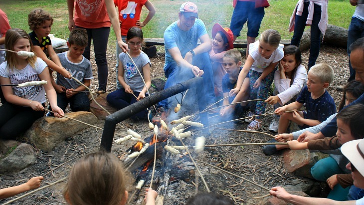 Dinner is in a communal hall and we were treated to a good old fashioned Aussie roast with all the trimmings. All this fresh air made us work up quite the appetite! After dinner the camp fire was in full force as a one-man band arrived to entertain us with an Aussie-Sing-Along, including introducing my son to the dance, Heel and Toe (he still does this dance move!). In between barn-dancing we toasted marshmallows on the fire before retreating to our lodge.