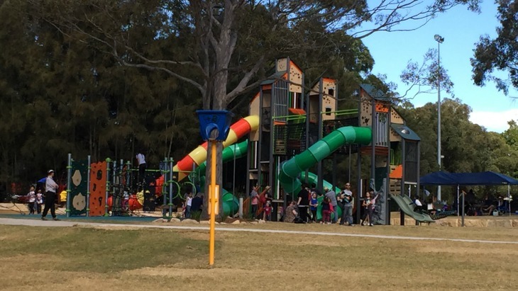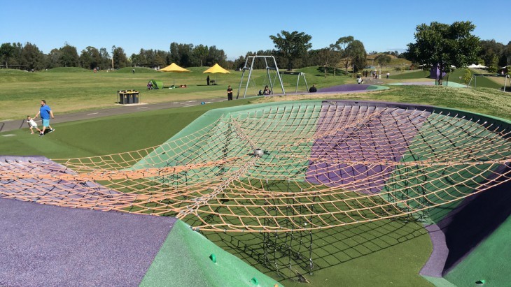 This Blaxland playground sure does have the WOW factor. It will feel like you've entered the Teletubbies world with purple and green astroturf hills and endless play spaces surrounding you. There are hidden slides and tunnels cut into hillsides, climbing nets, a massive spinning satellite dish, a viking swing, a double flying fox, and a HUGE water play area where kids can get totally soaked. Just be mindful- there's no shade, so on summer days, make sure the kids have hats and sunscreen! Read the review here.