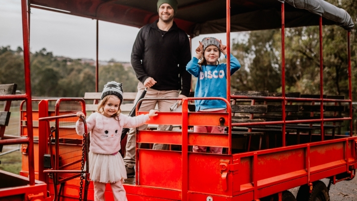 The Farm is really easy to get to (it’s just off the M7 near the Western Sydney Parklands) and so so open. It was raining when we visited but that didn’t slow us down one bit. As soon as we got there we jumped on the tractor for a ride around some of the paddocks with Farmer Jess (tractor rides happen twice a day), and heard all about how the farms works and in particular we learned about the sheep they keep at the Farm and how they are looked after.