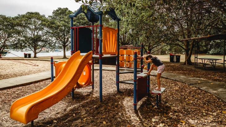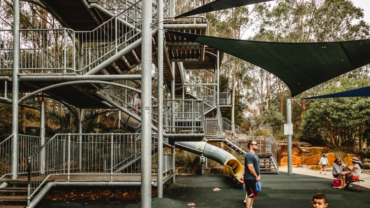 This playground located on the shore of Kissing Point Bay (near Ryde) is a great option for parents and kids during all of the warmer months as it has a free water-play area that’s great for splashing around and cooling off. Plus, it has the biggest super slide we have ever seen at a playground!