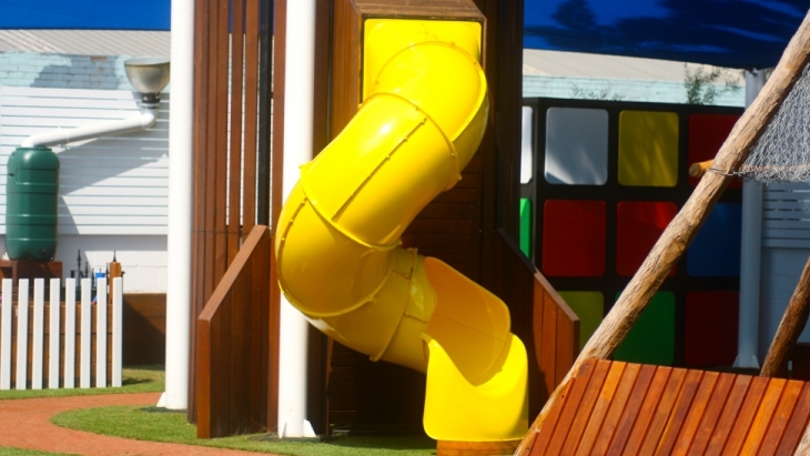 Kids Club are no strangers to fun facilities, they truly believe environment is the third teacher in the cognitive and physical development of a child. So what exactly will your children be experiencing at the new Rosebery centre in Sydney's inner west? Well, their rooftop play area will make jaws hit the floor. The twirling yellow slide spurting out of a rocket ship, the wooden teepee shade, the sand pit with diggers, the pirate ship .... and of course, the pièce de résistance: the real aeroplane with slide!