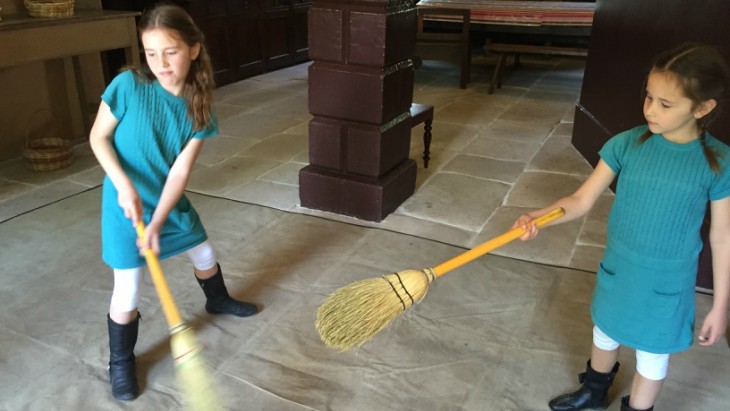 My 11-year-old was shocked when she learned about the scullery maids tough duties, as those servants were usually only a year older than her. In the kitchen the children took turns at folding the washing, grinding the spices, chopping the lavender, weighing the cooking ingredients and sweeping the floor.