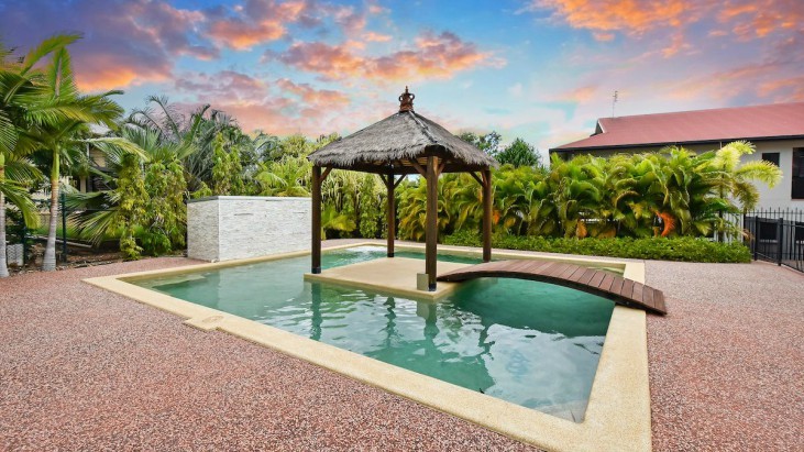 So what does $1.1m buy you in Darwin today? It can buy you this 5-bedroom, 2-bathroom, double garage Balinese style mansion – complete with a pool and gazebo.