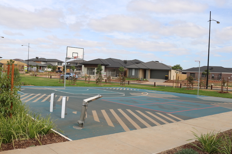 The playground also features a basketball and netball half court, handball court, water station, and exercise equipment.