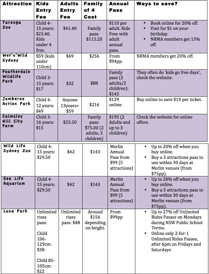 Alas, we do it anyway because we love our kids and we know that living in Sydney means sooner or later we will succumb to all the amazing attractions the city has to offer, even if it's just once. If you're a budgeter and a planner you will love our price guide to each attraction in Sydney - plus ways you can save on ticket prices. No go forth and enjoy Sydney!