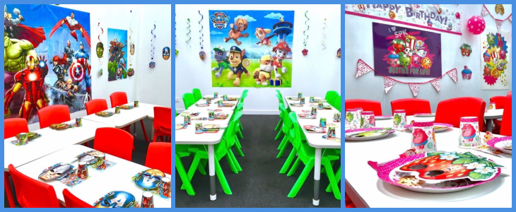 (themes include Paw Patrol, Frozen, Spiderman, Shopkins, Thomas the Tank Engine, Avengers, to name a few) - Food, beverages and a lolly bag for all party guests (a cake may be brought in by the host)